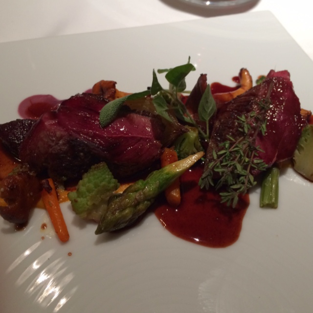 フランスで唯一、窒息鴨(カナール・エトフェ)の製法を認可されているビュルゴー家の鴨は、他の鴨に比べてより赤く繊細で、旨みがのり、柔らかい肉質が特徴なのだそうだ。その極上の鴨さんが絶妙の火加減で調理され、芳ばしい香りを漂わせてお皿の上に鎮座ましましている(嬉)。そのフルフルのお肉に凝縮された極上のおいしさといったら!!ボワブルベール(緑コショウ)のソースが鴨肉のおいしさをさらに際立たせてくれる。