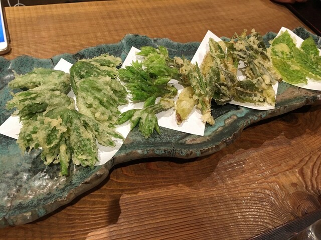 野山の珍味が繊細かつダイナミックに盛り合わされた一品。。。。