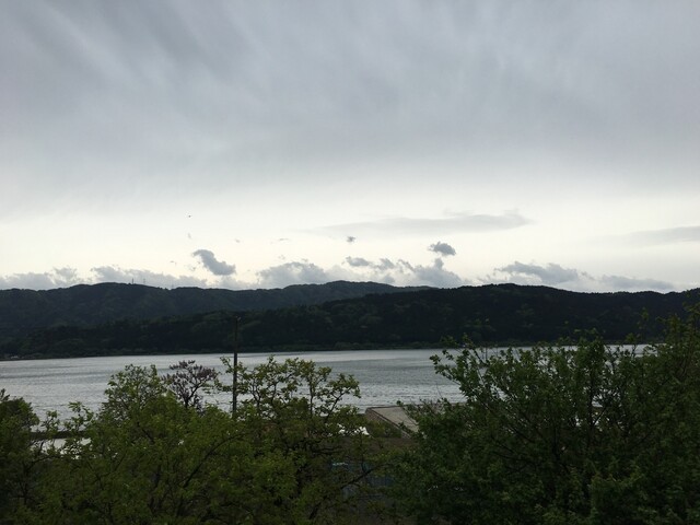 その後、ダイニングへ移動する。大きな窓からは暮れなずむ余呉湖の情景がたっぷりと拝める。