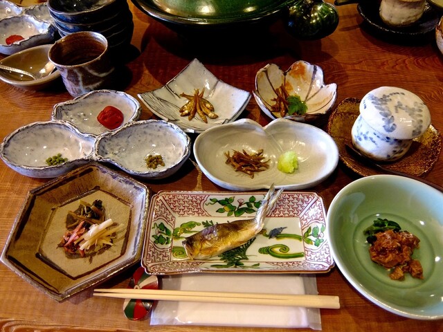 鮎、氷魚、ゴリ、ハゼ、イノシシ肉、山椒、山菜等々、 前日同様に、山の恵み、そして湖の恵みがてんこ盛り!!