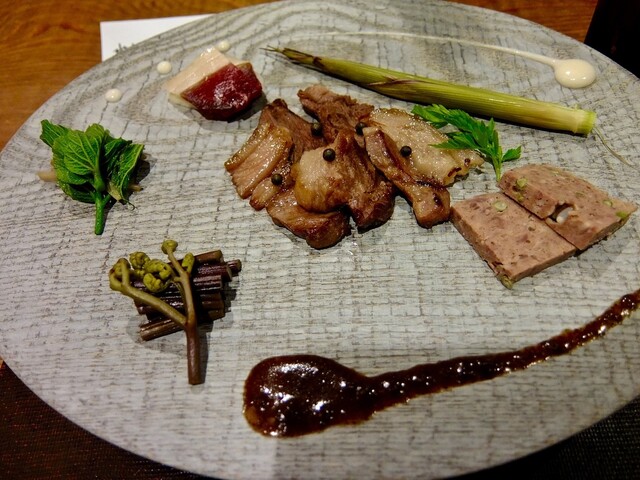 夏鹿、くまと鹿とイノシシのテリーヌ、いたどり、甘草の花などなど、