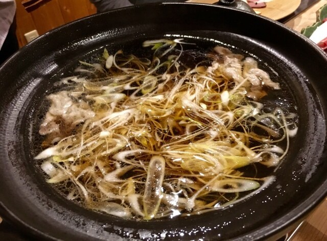 たっぷりの葱とバージョンアップした大将の秘密の「熊鍋用」スープで「くまさん」をいただく。