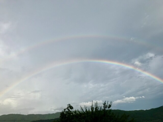 お風呂上がりに部屋でノンビリしていると、雨上がりの空に美しい虹が!!