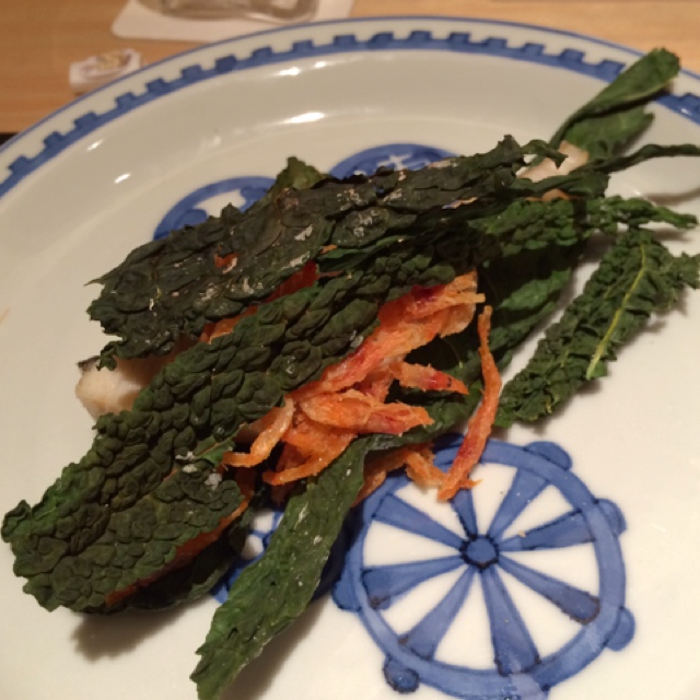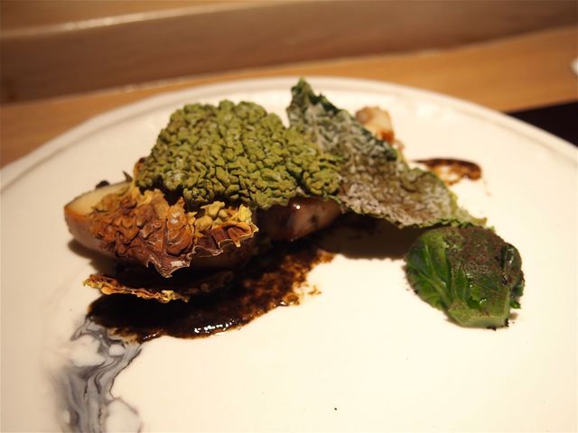 此方も熟成させた「鰆」はパリパリのチヂミキャベツ、芽キャベツ、海苔のソースと共にいただく。。。
