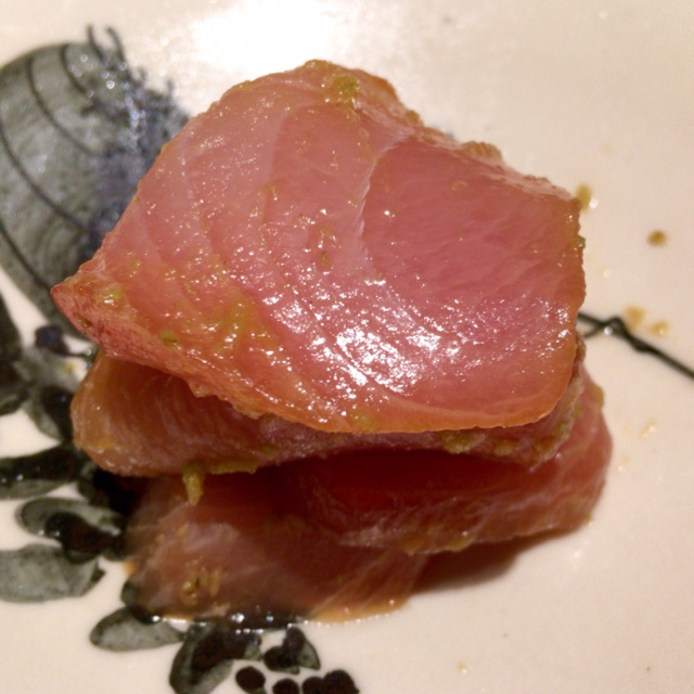 【14年9月】夕方に寝かせたお造りは梅味でさっぱりと。。。柔らかわさびがポイント
