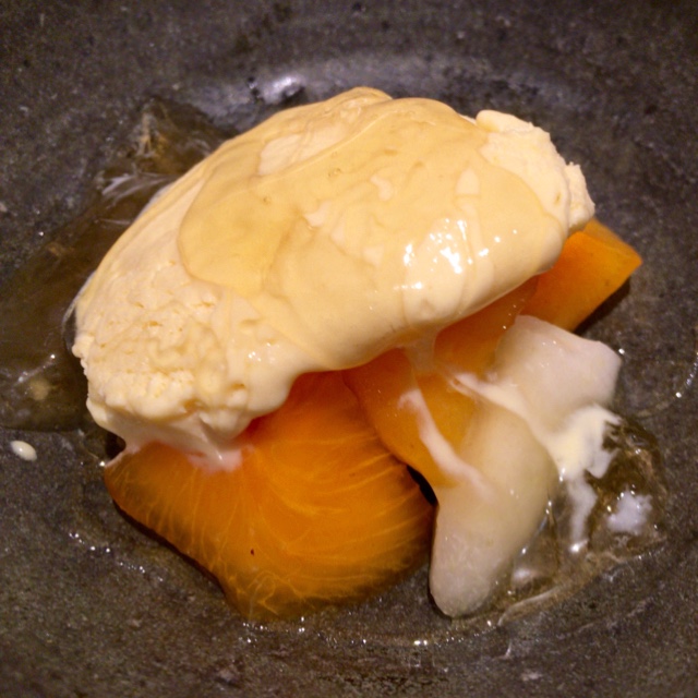 デザートは初めて傳さんに伺ったときにいただいて感動した「日向夏のゼリー」。そのまま食べてもおいしいし、果汁を搾っていただいてもまたおいしい。クリームチーズとラムによるまろやかさがたまらないお味!!