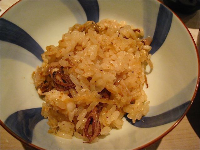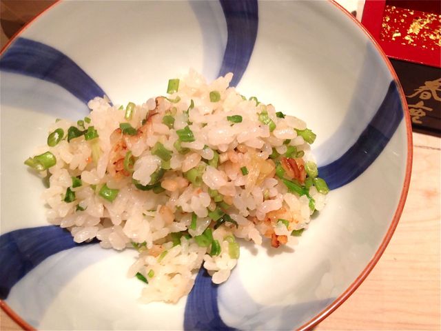 御飯は「螢烏賊御飯」。生姜がたっぷりあしらわれているので、今年はもうそろそろおしまいというたっぷりの螢烏賊をサッパリといただくことができる。普通に盛っていただいて食べたのに、サッパリしているのでお焦げの部分を少しお代わり。またまた重たくなってしまった(汗)が、おいしかったから良いことにしよう。。。