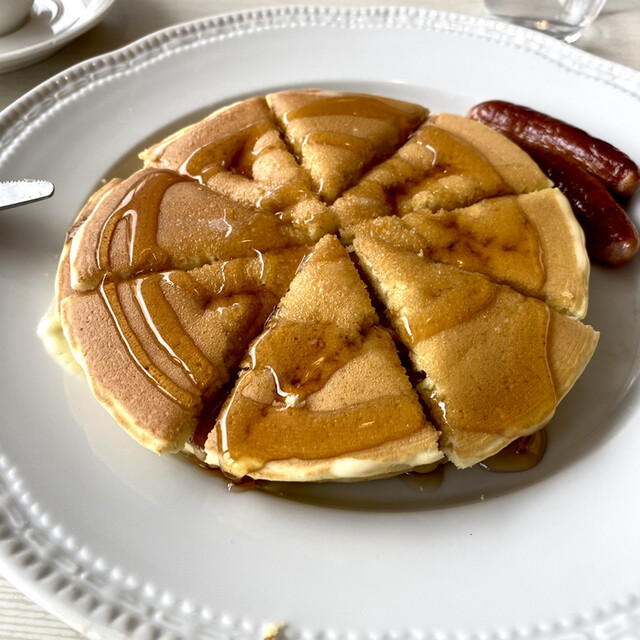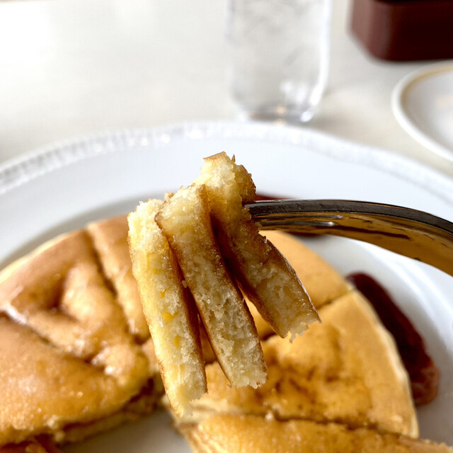 ロイホのパンケーキ、一名ディモズ・パンケーキはなぜ薄いのか、なぜ表面がふわりとしていて蜜の浸透を容易にしているのか。