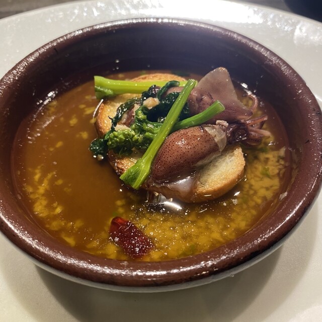 ホタルイカと菜の花のア・ヒージョ。これを季節感という