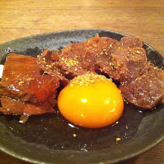 牛缶と鶏卵。七味を振ったが、胡椒がより調和する