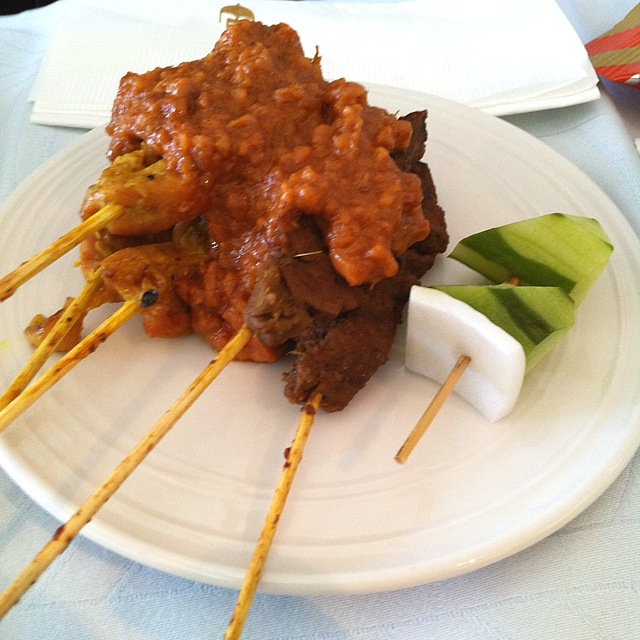 マレーシア航空。前菜にサティが出てきて嬉しい