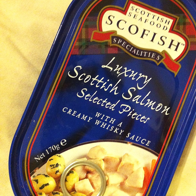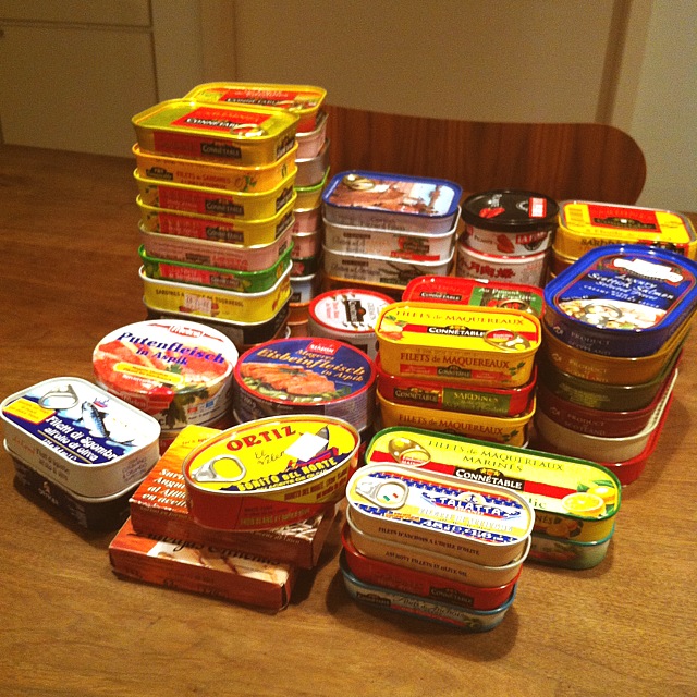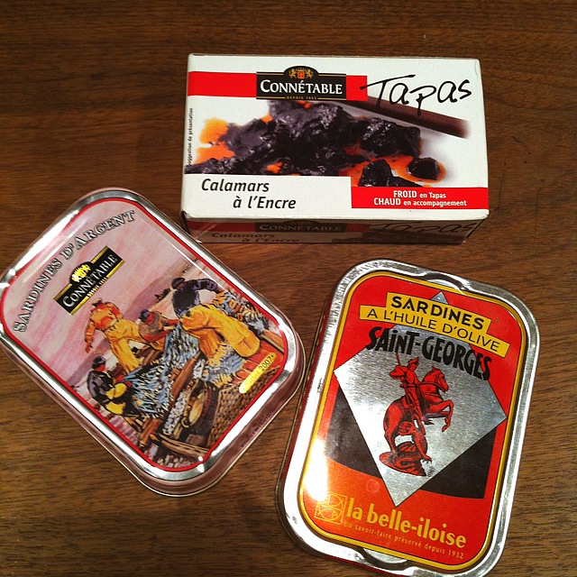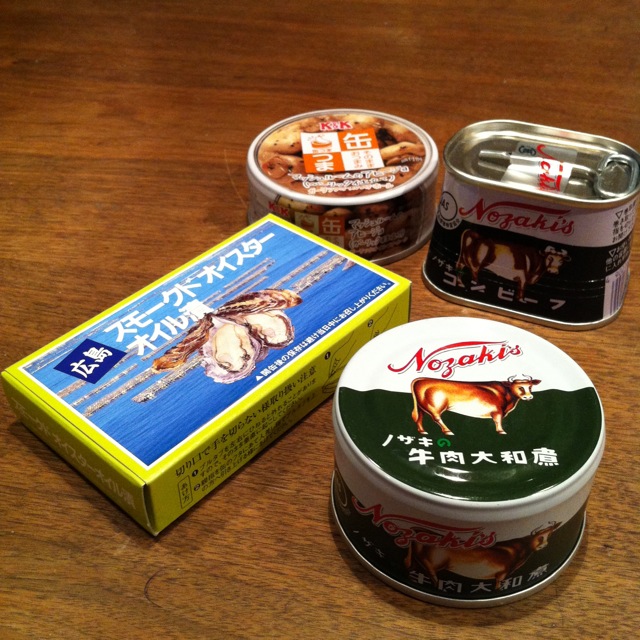 オイルサーヂン。油を半分捨て醤油を加えて七味を。