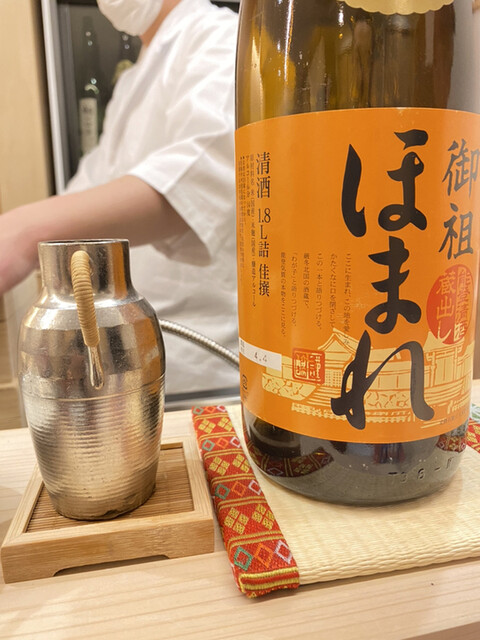 いしまるでは純米酒は勿論だが吟醸酒、本醸造酒、普通酒、ひいては大将自らが長年過酷な環境下で鍛え抜いた古古酒まで出てくる。これは酒屋任せにせず、居酒屋時代から食事と酒の事を只管に考えてきた賜物であり、大きな武器であると思う。パック酒目の前に置く高級鮨屋なんて他に知らない!