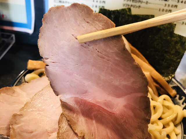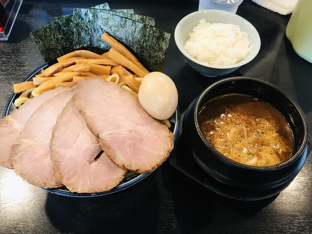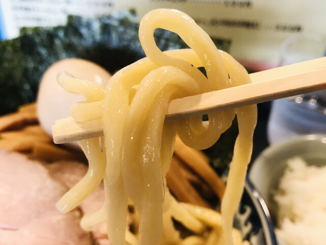 濃厚魚介のつけ麺、自家製麺、スモーク入ったチャーシューと味玉!