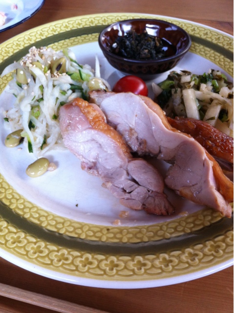 それに、甘辛のケチャップとワインのソースが合う。ひじきとかつおぶしの煮物、茄子とのバランスも良く。