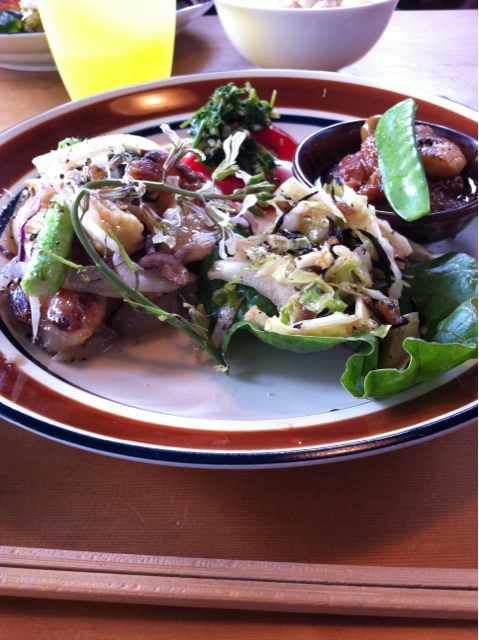 定食は、1000円で、しらすとキャベツのキッシュか、鶏の麹焼きを選んで、それに惣菜が三品ついてくる。