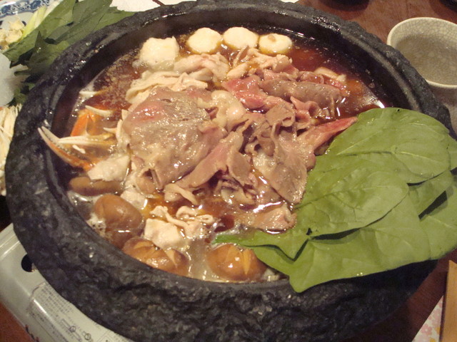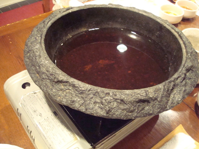 台湾のゴマ鍋。熱々にしたごま油に