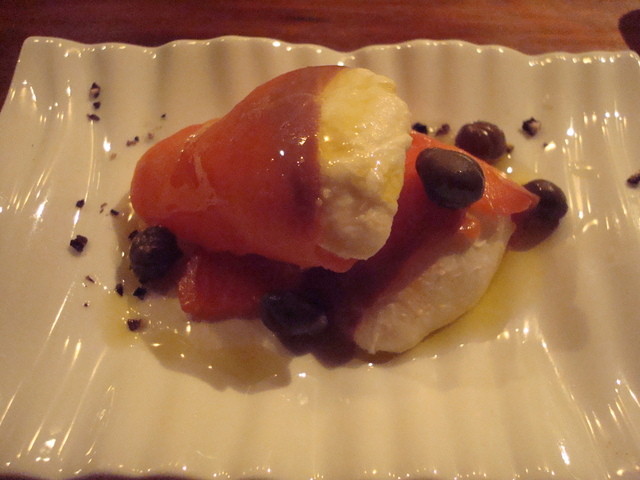 お通しのモッツアレラチーズのサーモン巻き☆☆