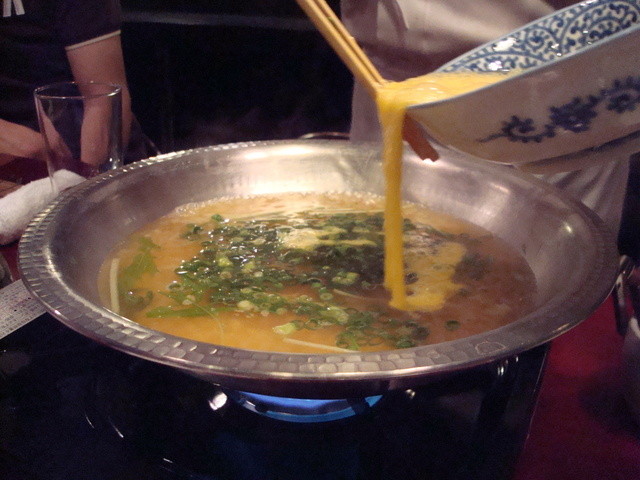 ☆最後の雑炊はコラーゲンとトキ卵のハーモニー。