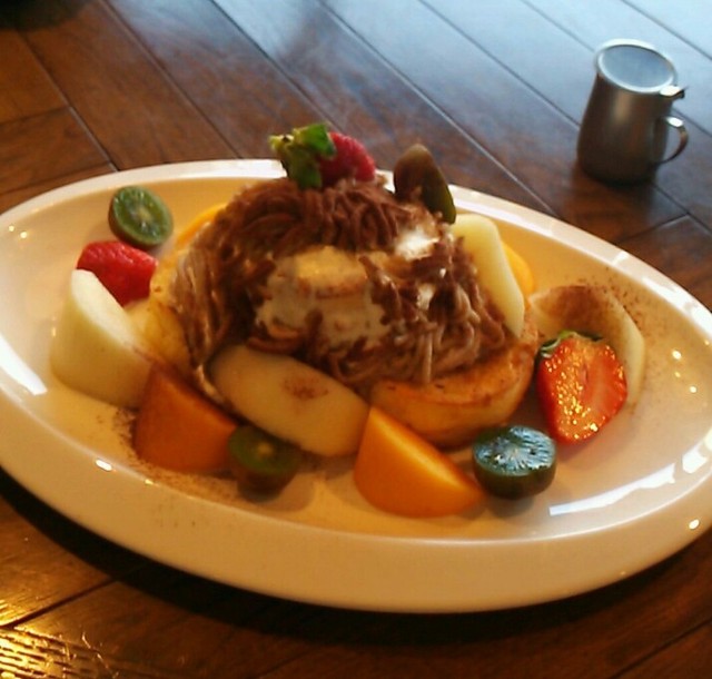 期間限定でモンブランのパンケーキがあったので注文しちゃいましたよん