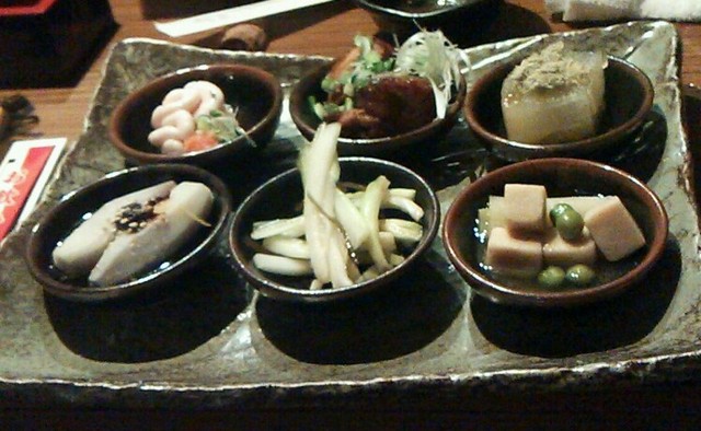 お皿には、イキなおつまみが一緒に横に添えられていて