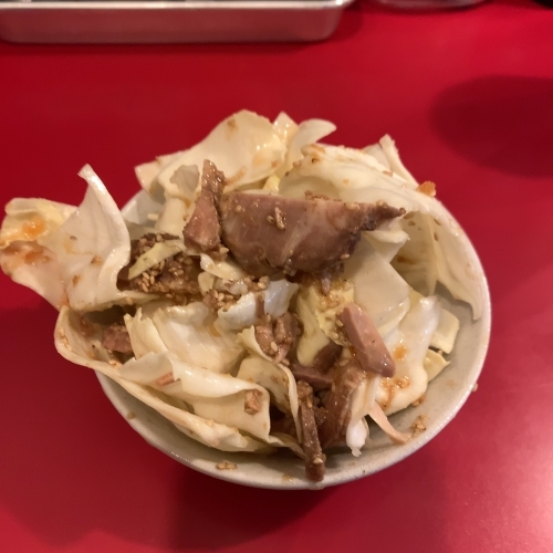 家系ラーメンのお店で、キャベチャーという独特の旨タレにまぶしたトッピングが特徴です。ラーメンはノーマルも良いですが、アゴ出汁というオリジナルスープが激うまで、出汁系の料理が好きなワタシにとってはたまりませんな^^しょっぱい味が特徴なので、しょっぱいのが苦手な御老人さんなどは、薄めを指定した方が賢明です。てか薄めでもしょっぱさは結構ありますので、それを踏まえて訪問されるのが良いでしょう。自分で生姜とニンニクの摺り下ろしを投入できるので、なんだか元気になった気もしてくるラーメンですよ。