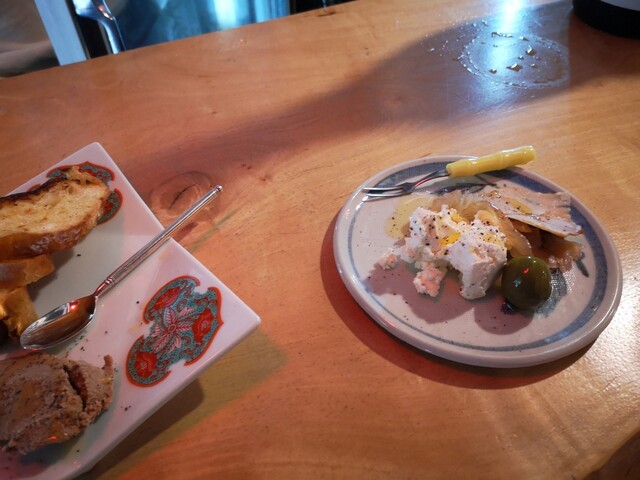逸品もクリームチーズと燻製生ハム、皮ポン酢、レバーパテが驚くほど美味しかったです。