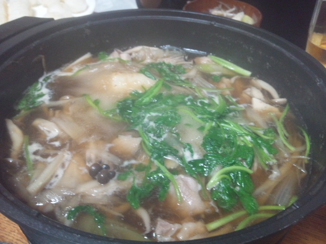 そして自家製「きりたんぽ」と「だまこもち」を入れ、味が染み込んだ頃合いを見計らってセリをたっぷり目に入れていざ実食となりました。