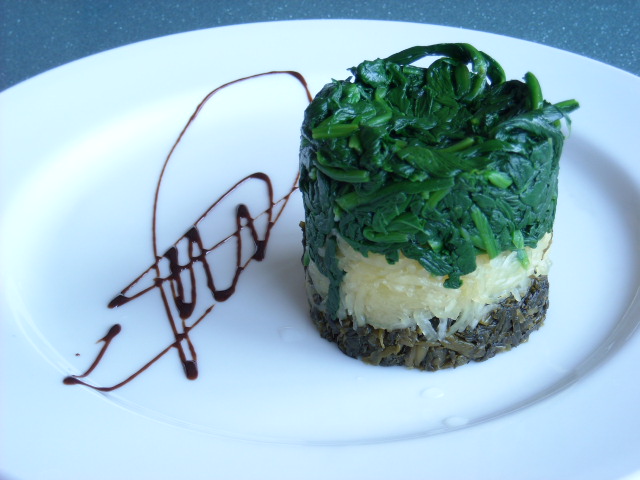 こちらも洋風、ホウレン草と高菜、真中の白いのは??
