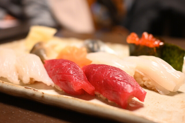 さぁ、おつまみをほぼ平らげたところで供された握り寿司。