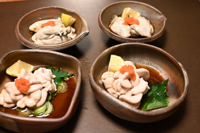 山形のずわい蟹や白子ポン酢、生牡蠣にあなご煮などでビールを流し込む。