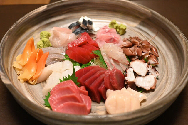 刺身の盛り合わせは毎回大将にお任せ‼️なので何が出てくるかはお楽しみ。