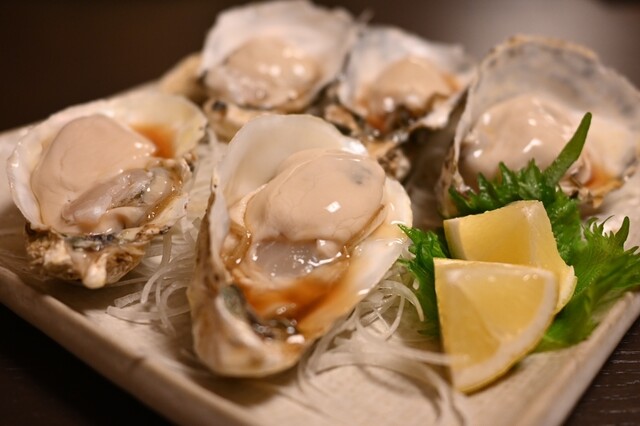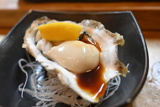 生牡蠣ポン酢・・・ぷっくらと厚肉の身が美味い‼️