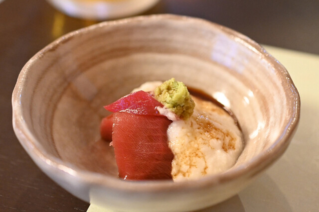 お通しのメジマグロ旨い・・・とろける口当たりは最高にいい感じです♬