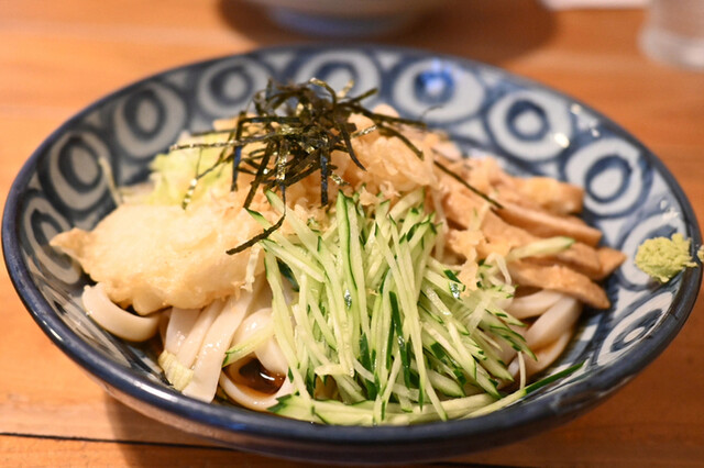 でもそんな鴨汁は、やや濃いめの味で、冷たいうどんに負けない絡み付きを見せてくれます。