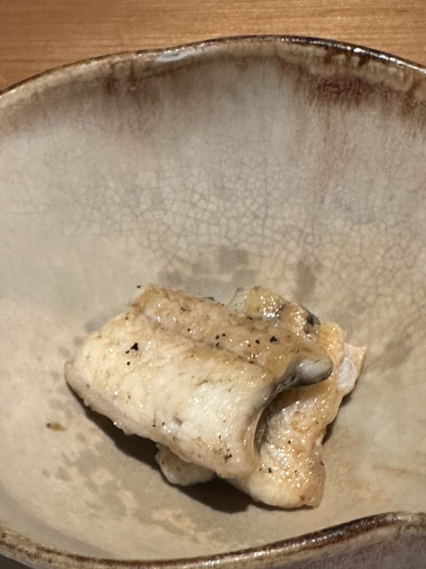 お酒と共に、お通し?先付の鱧の湯引きが出され、日本酒と共に頂きます。