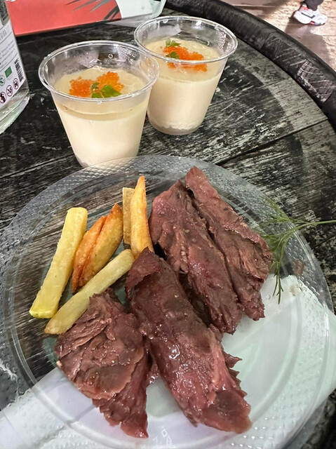 フレンチバーベキューはビュッフェスタイルで提供され、どの料理も本当に美味しかったです。また、スパークリングワインやビール、メスカルのカクテルなどのお酒も充実していました。ほろ酔いの中で楽しむジャズは最高に心地よかったです。