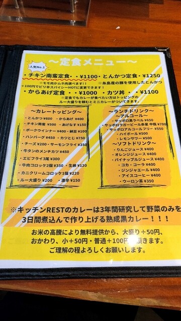 今日は以前にチキン南蛮を食べたキッチンRESTに
