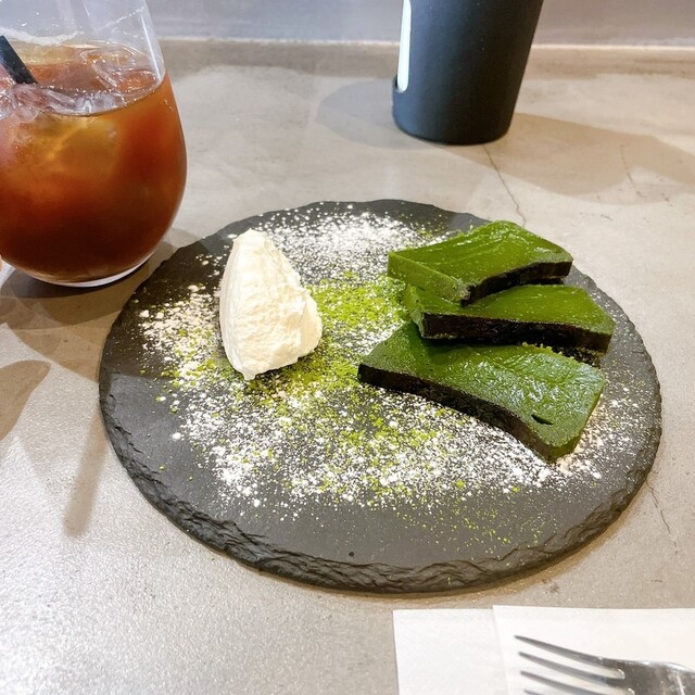 食後に濃厚抹茶テリーヌとアイスアメリカーノを注文。