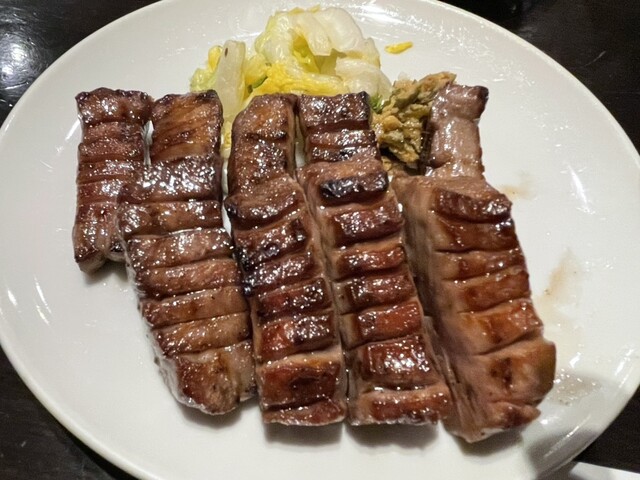 仙台市青葉区中央、仙台駅とは通りを挟んで向かいのビルの3階にある牛タンの名店。連チャンの牛タンとなりましたが、今回は上撰極厚真中(しんちゅう)たん定食(3枚9切)をいただきました。この牛タンはこれまで味わったことがないくらい柔らかく、牛タンに対する印象がガラリと変わりました。歯応え・食感、柔らかさ、旨みどれも素晴らしく9切の牛タンをゆっくり味わいながら堪能しました。定食の麦飯、とろろも牛タンとマッチしています。つまみとして食べた炭火焼き牛タンソーセージもぷりぷりした食感で旨みが濃く美味しかったです。