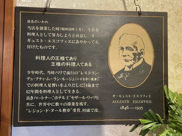 つくば市松代、国道408号線沿い(入口は側道から)にある1963年創業の老舗で、食べログの洋食EAST百名店2025にも選ばれた名店。店名はフランスで「料理人の王様」と言われたオーギュント・エスコフィエに因んだそうです。木をふんだんに使った店内は家具も含めてとても落ち着いた雰囲気。今回はランチメニューから「ハンバーグ玉子乗せ」と温かいニンジンのスープをいただきました。