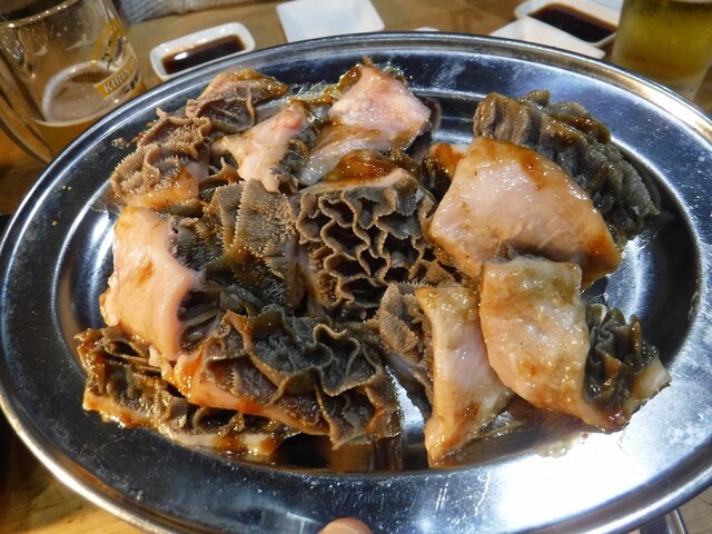 ホルモンは白くってキレイでぐじゅぐじゅタイプ、、、さっと火を通してご飯と一緒にかけみます。ここの醤油タレはあっさりしており肉の味を生かしてくれます。