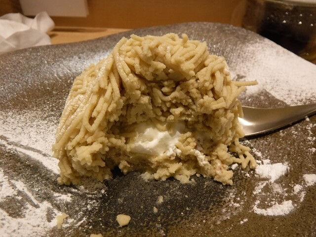 中の無糖の生クリームとマロンクリームとの相性が抜群すぎす、、、ミルキーな栗の味になります。そして下にある渋皮クリームは濃厚な甘味で絶妙なバランス!!!