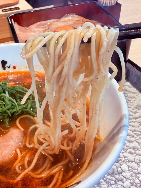 炙りチャーシューの香ばしさも絶妙で、スープとの相性バッチリ