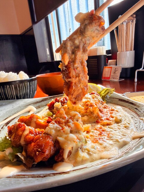揚げたてサクッと軽い衣に、ジューシーな鶏肉はやわかく、そこへ絡む甘酢とタルタルのバランスが最高❗️