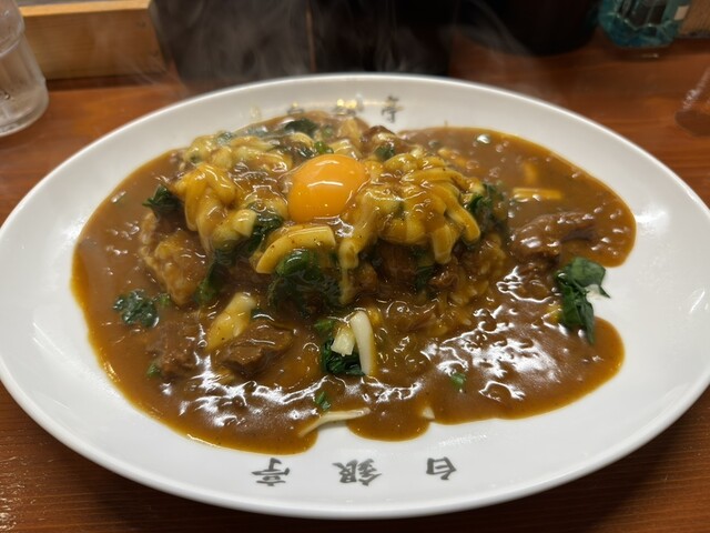 注文はカツカレー+ほうれんそう、生卵、チーズをトッピング。