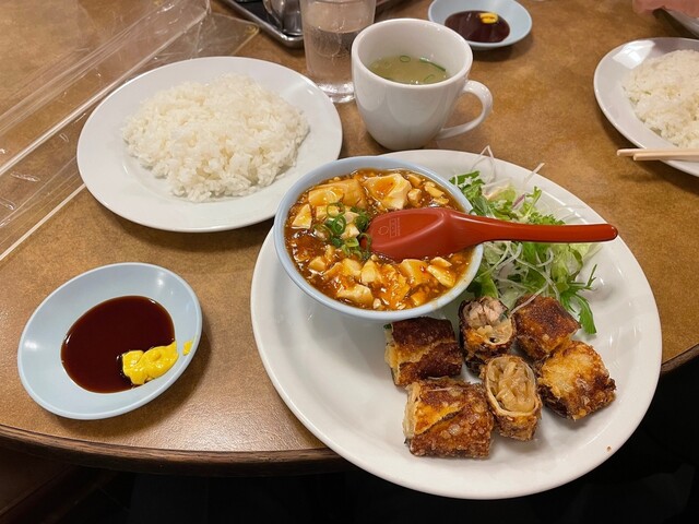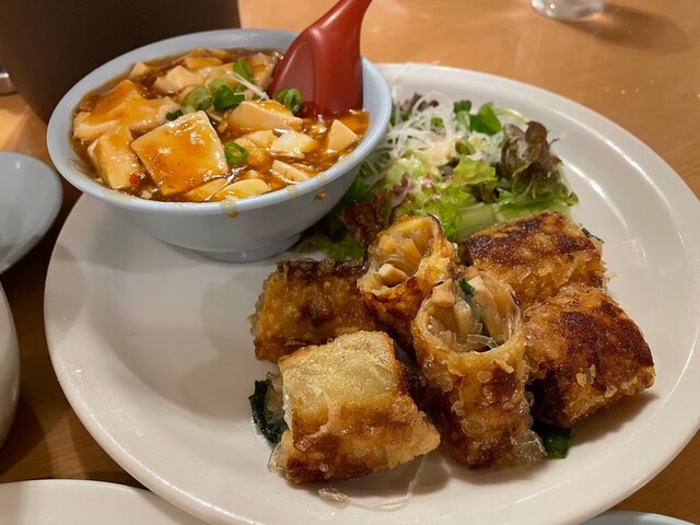 春巻・麻婆豆腐(小)・サラダ・ライス・スープ
