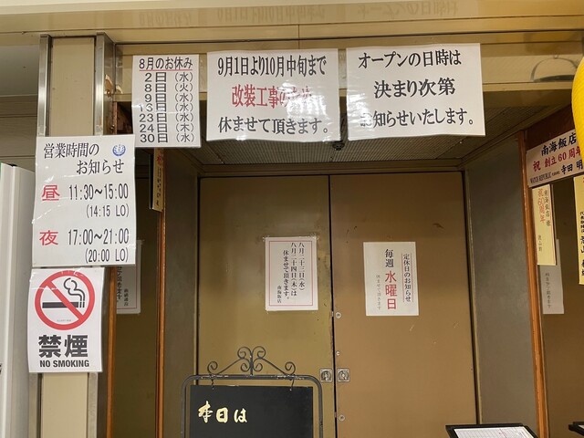 ★★★南海飯店さんは9月1日~10月中旬まで改装工事です★★★