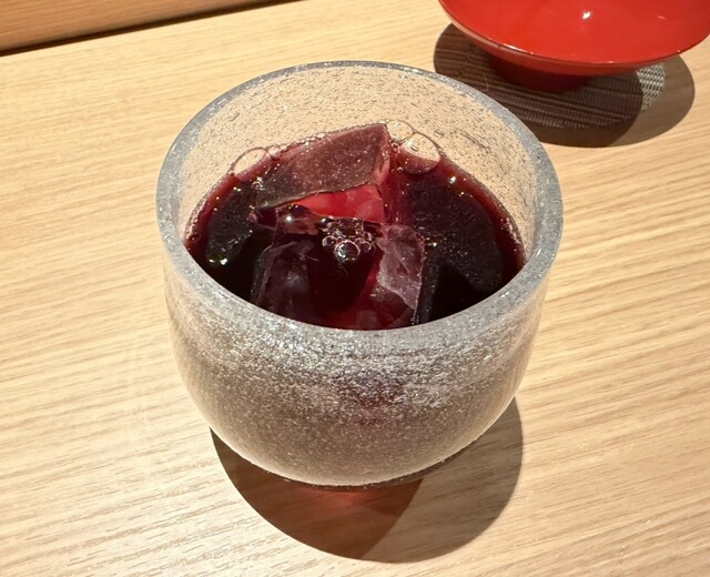 バニラには食前酒でいただいた日日の風味を残しアルコールを飛ばしたソースを渡されるので、これをバニラにかけるという乙な、粋なデザートに仕上がりました。
