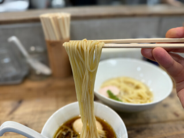 麺も細麺かつプチプチと歯応えのある硬い麺でこのような麺には初めて出会えたという衝撃もあり。